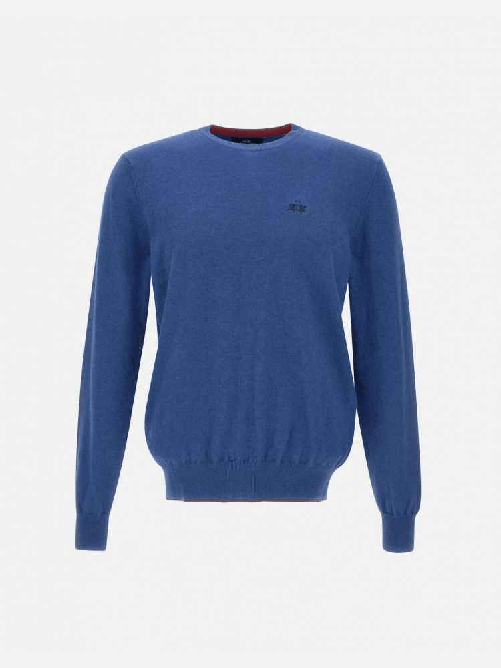 LA MARTINA MAGLIONE UOMO LA MARTINA WMS005 YW091 COTONE 07037 BLU ORIGINALE AI 2024