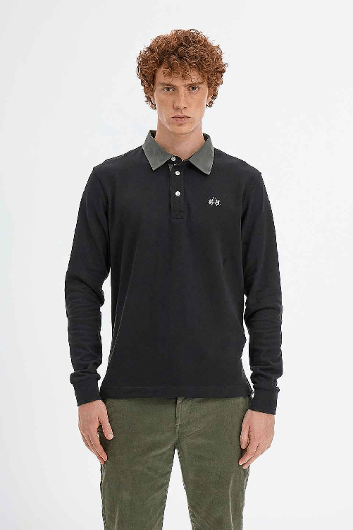 MAGLIA POLO UOMO LA MARTINA UMP007 JS005 COTONE 09999 NERO ORIGINALE AI 2024 L Nero