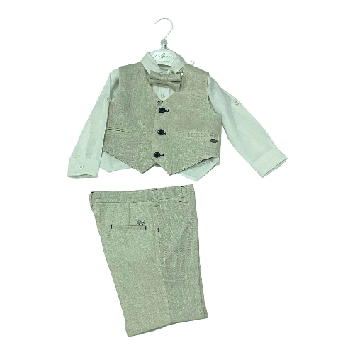 ABITO COMPLETO CERIMONIA BIMBO LES GAMINS LGMP305514N LINO ORIGINALE PE 2023 6 mesi Beige