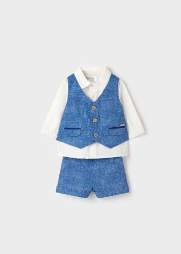 COMPLETO PANTALONCINO GILET CAMICIA NEONATO MAYORAL 1214 2 BLU ORIGINALE PE 2022 6 / 9 mesi Blu 38,36 €