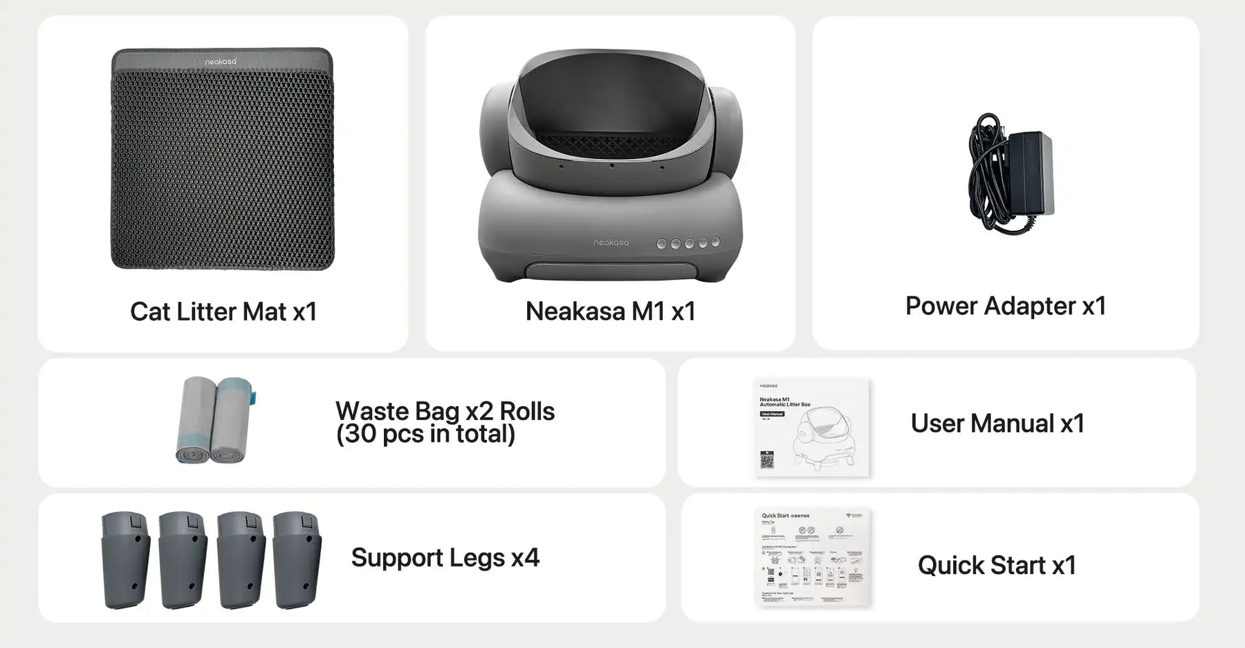 Il pacchetto M1 include 2 rotoli (30 pezzi) di sacchetti per rifiuti e un tappetino per lettiera.