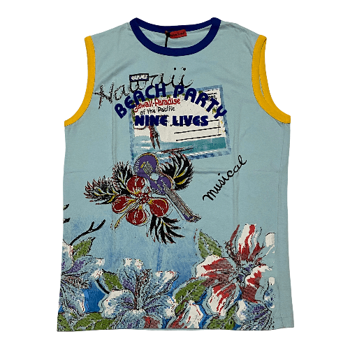 NINE LIVES MAGLIA T SHIRT CANOTTA UOMO NINE LIVES 62K7654 COTONE TOPPA 695 BLU ORIGINALE PE