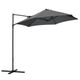 Quest'estate, utilizza il nostro ombrellone da giardino PG Convenienza per tenere all'ombra il tuo divano da esterno, le sedie e altro ancora. Di' addio alle scottature estive con questo ombrellone regolabile e girevole a 360° per proteggerti dal sole a ogni angolazione. Apri e chiudi l'ombrellone facilmente con la manovella integrata, per goderti ogni momento all'aria aperta con il massimo comfort. Caratteristiche: ● Ombrellone a sbalzo per fare ombra nei tuo spazi esterni e proteggerti dal sole; ● Tettuccio ventilato che rende l'ombrellone a braccio stabile contro il vento; ● Rotazione di 360° per restare al riparo dal sole in ogni momento; ● Realizzato in tessuto di poliestere e telaio in acciaio stabile; ● Supporto con due viti di fissaggio; ● Ombrellone a manovella per una rapida apertura e chiusura; ● Laccio di sicurezza per tenere chiuso l'ombrellone quando non è in uso; Dati tecnici: ● Colore: Grigio Scuro; ● Materiale: Poliestere, acciaio; ● Diametro dell'ombrellone: Ø256 cm; ● Altezza ombrellone: 245 cm; ● Altezza base del tettuccio: 200 cm; ● Dimensioni base: 100L x 100P x 5A cm; ● NOTA 1: Il peso richiesto di 60 kg non è incluso; ● NOTA 2: Non utilizzare l'ombrellone in caso di condizioni atmosferiche estreme (vento forte, pioggia battente, neve); Contenuto della confezione: ● 1 x Ombrellone da giardino a braccio; ● 1 x Kit di accessori; ● 1 x Manuale;