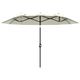 Goditi le belle giornate al comfort nei tuoi spazi: a proteggere dai raggi del sole ci pensa il nostro ombrellone doppio PG Convenienza. L'ampia copertura offre una grande zona d'ombra e, grazie al tettuccio inclinabile, puoi proteggerti dal sole in ogni momento della giornata. Apri e chiudi facilmente l'ombrellone con la pratica manovella inclusa e riponilo senza fatica grazie al design funzionale a 2 sezioni. Caratteristiche: ● Ombrellone doppio per offrirti un'ampia copertura dal sole; ● Ombrellone da giardino con tettuccio inclinabile a 45° con 3 prese d'aria e 12 stecche; ● Copertura in poliestere 180gsm e struttura in acciaio; ● Manovella per aprire e chiudere facilmente; ● Laccio per tenere l'ombrellone chiuso; ● Ombrellone per esterno a 2 sezioni, per smontarlo e trasportarlo facilmente; ● Facile da montare; Dati tecnici: ● Color: Beige; ● Materiale: Poliestere, acciaio; ● Dimensioni generali: 295L x 152P x 222A cm; ● Altezza dell'ombrellone: 197 cm; ● NOTA 1: È necessario aggiungere una base con peso da 30kg (NON INCLUSA). Compatibile con la base per ombrellone PG Convenienza codice prodotto 84D-077; ● NOTA 2: Non usare l'ombrellone in condizioni meteo avverse (vento forte, pioggia e neve); Contenuto della confezione: ● 1 x Ombrellone doppio; ● 1 x Manuale di montaggio;