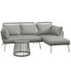 Vuoi rinnovare il tuo arredamento da giardino? Questo set PG Convenienza porterà eleganza e comodità nei tuoi spazi! Il set è composto da un tavolino da giardino, un divano 2 posti e una chaise longue che si combinano come divano angolare. La solida struttura in acciaio e il rattan sintetico garantiscono solidità e resistenza. I morbidi cuscini ti offrono un comfort ottimale per rilassarti all'aria aperta, mentre il tavolino con ripiano in vetro temperato aggiunge un tocco di eleganza in stile boho. Caratteristiche: ● Divano da giardino ad angolo ideale per il patio, la terrazza e in casa; ● Mobili da giardino in stile boho chic dal design semplice; ● Struttura solida e durevole in acciaio con robusto rattan in PE; ● Seduta e schienale imbottiti del divano da esterno per dare il massimo comfort; ● Cuscini sfoderabili e lavabili; ● Montaggio richiesto; Dati tecnici: ● Colore: Grigio chiaro; ● Materiale: Rattan PE, poliestere, acciaio; ● Dimensioni divano 2 posti: 125L x 77P x 82A cm; ● Dimensioni chaise longue: 137L x 68P x 82A cm; ● Dimensioni tavolino: Ø49 x 47A cm; ● Capacità di peso: Divanetto 2 posti: 220 kg, chaise longue: 160 kg, tavolino: 30 kg; Contenuto della confezione: ● 1 x Divano 2 posti; ● 1 x Chaise longue; ● 1 x Tavolino da giardino;