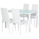 I migliori incontri si svolgono in ambienti accoglienti, magari davanti a un buon piatto di pasta. Per questo, sarebbe meglio che un set con tavolo da pranzo e sedie coordinate PG Convenienza non mancasse assolutamente nella tua casa o nel tuo ristorante. Infatti, grazie al suo stile elegante bianco, le sedute imbottite e il piano d'appoggio in vetro temperato, questo set è perfetto per creare un'atmosfera accogliente in ogni ambiente. Caratteristiche: • Set 5 pezzi composto da 1 tavolo e 4 sedie abbinate; • Sedie ergonomiche con schienale alto, imbottitura in gommapiuma e rivestimento in finta pelle; • Piano del tavolo in vetro temperato; • Telaio in acciaio; • Ideale per sale da pranzo, cucine, bar, pub; • Montaggio richiesto; Dati tecnici: • Colore: Bianco; • Materiale: Metallo, vetro temperato, finta pelle; • Dimensioni del tavolo: 120L x 70P x 75A cm; • Dimensioni della sedia: 40L x 50.5P x 97A cm; • Dimensioni della seduta: 40L x 40P cm; • Altezza della seduta da terra: 46 cm; • Capacità di peso: 100kg (sedia), 50kg (tavolo); • Codice prodotto: 835-255WT; Contenuto della confezione: ● 1 x Tavolo da pranzo; ● 4 x Sedie da pranzo; ● 1 x Manuale di istruzioni;