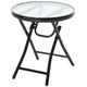 PG Convenienza Tavolo da Giardino Pieghevole in Metallo, Tavolino da Giardino Piccolo con Ripiano in Vetro e Blocco di Sicurezza, Φ45x50cm Nero Colore Bianco,Materiale Metallo, Vetro temperato