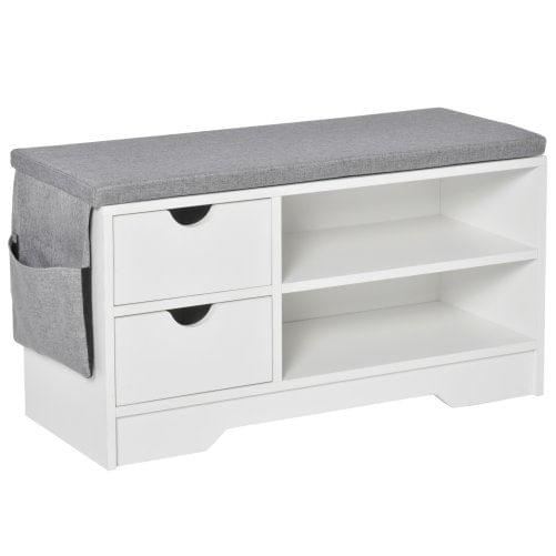 PG Convenienza Panca Scarpiera Salvaspazio in Legno con Cuscino, 2 Cassetti con Mensola Regolabile per 8 Scarpe, 104x24x55cm, Bianco 64,92 €