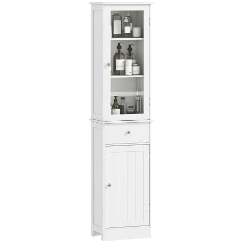 PG Convenienza Mobile Colonna Bagno Salvaspazio con Armadietto, Cassetto e Ripiani in MDF, 40x27x171.5cm, Bianco 99,89 €