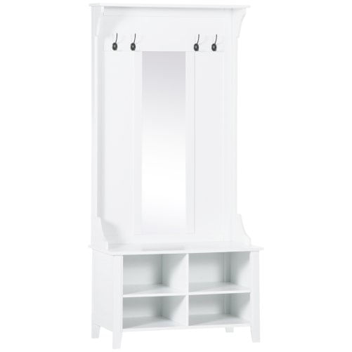 PG Convenienza Appendiabiti Attaccapanni da Terra con Specchio Scarpiera 4 Ganci Legno 80x40x170cm Bianco 22,94 €