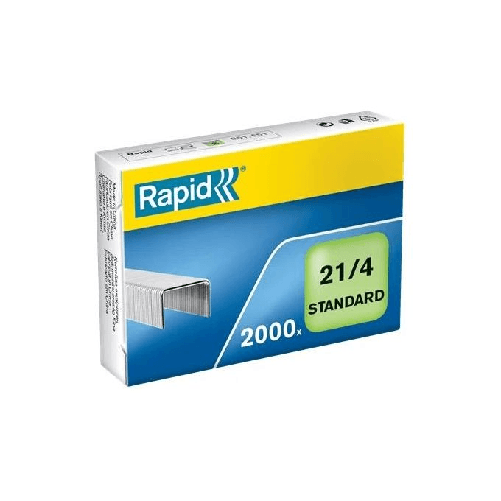 Rapid 21-4. Tipo: Pacchetto di punti, Calibro: 21-4, Lunghezza della gamba della graffetta: 4 mm. Larghezza imballo: 41 mm, Profondita' imballo: 12 mm, Altezza imballo: 56 mm