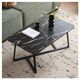 Il piano effetto marmo e la struttura in metallo incrociata lo rendono un pezzo d'arredo moderno, resistente e visivamente d'impatto.