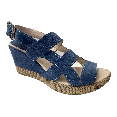 ZAFFIRO SCARPE SANDALO SANDALI ZEPPA DONNA ZAFFIRO 04 PELLE BLU ORIGINALE PE